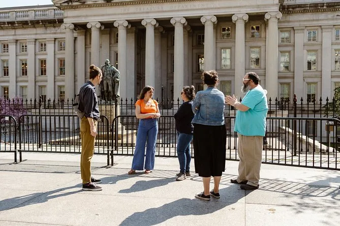 Nous avons passé devant le Treasury Building (qui, apparemment, a servi de Maison-Blanche de remplacement après l’assassinat — qui l’aurait cru ?), puis fait une pause devant le National Theatre. Mark nous a raconté que le fils de Lincoln regardait Aladdin là-bas ce soir-là, pendant que son père était au Ford’s Theatre. Ce détail m’est resté en tête toute la journée pour une raison inconnue. Des enfants riaient sur les marches ; c’était étrange de penser à tout ce chagrin si proche.