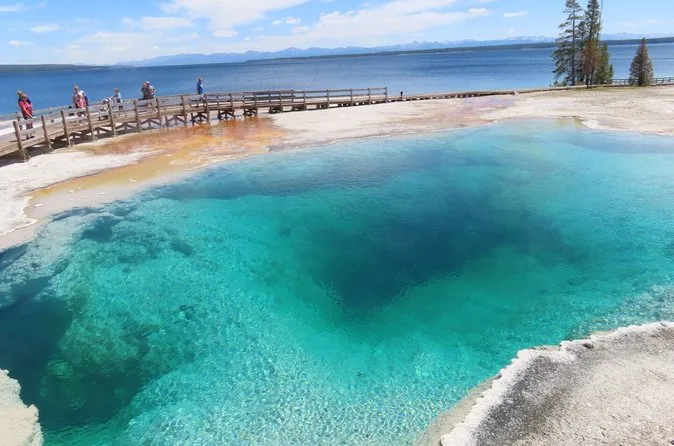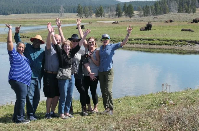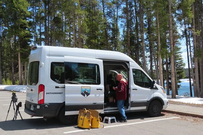 Votre journée comprend un transport confortable en van avec grandes fenêtres pour observer la faune, jumelles et longues-vues pour une observation sécurisée, un déjeuner à emporter avec choix de sandwichs (y compris vegan/sans gluten), snacks, eau en bouteille et boissons chaudes à volonté — plus assez de temps à chaque arrêt pour flâner sur les passerelles ou simplement profiter du paysage avant de retourner à West Yellowstone.