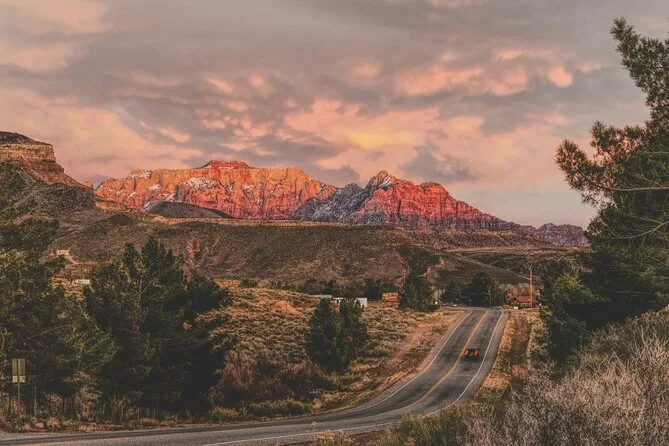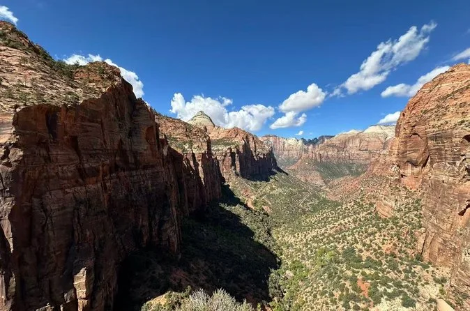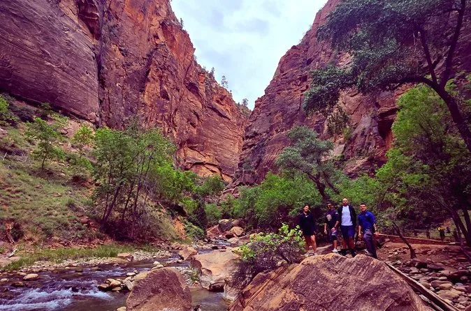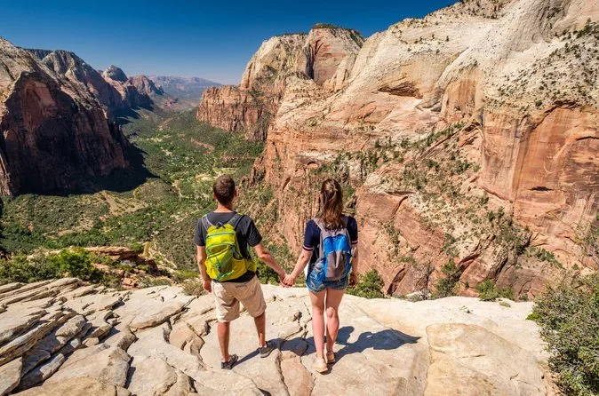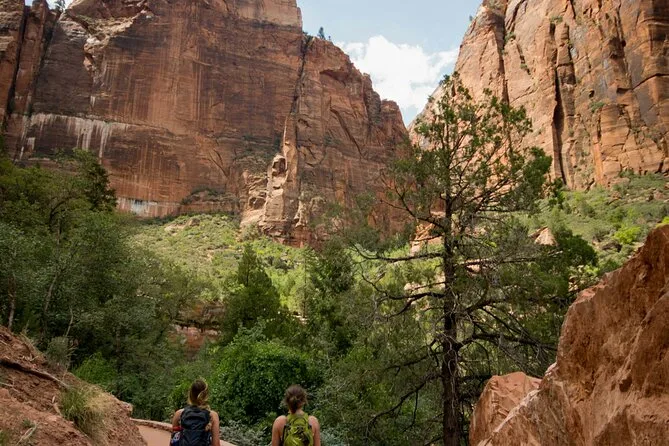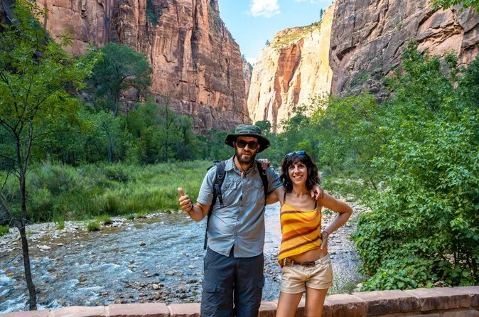 Votre journée comprend le transport aller-retour depuis certains hôtels de Las Vegas (avec prise en charge), tous les frais d’entrée à Zion (hors futurs suppléments pour non-résidents), des randonnées modérées guidées comme le Canyon Overlook Trail et Riverside Walk le long de la Virgin River, de l’eau en bouteille, des barres de céréales, et un déjeuner simple de type deli avant le retour en soirée.