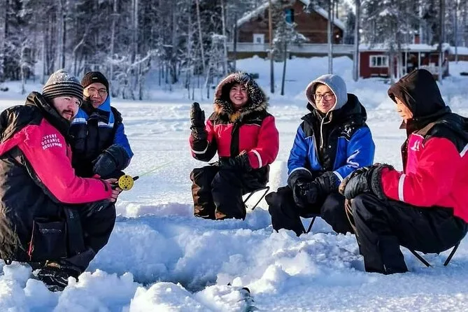 Votre journée comprend la prise en charge à votre hôtel ou point de rendez-vous à Rovaniemi, tous les vêtements d’hiver (combinaisons, bottes) pour rester bien au chaud, une balade guidée en traîneau à huskys de 5 km à travers les forêts lapones, environ une heure de motoneige (avec les enfants en luge sécurisée), tout le matériel pour la pêche sur glace avec l’aide des guides locaux si besoin, ainsi qu’un déjeuner au feu de camp avec pain lapon, saumon ou options végétariennes, marshmallows à griller et jus de myrtille chaud avant de repartir à la fin de votre aventure arctique.