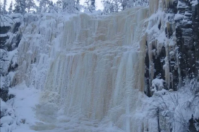 Partez au cœur de la forêt hivernale de Korouoma avec un guide local et admirez les cascades gelées qui dominent les sentiers enneigés. Réchauffez-vous autour d’un feu avec des encas et des boissons chaudes avant de terminer votre randonnée dans le silence des bois. Une expérience qui vous fera vous sentir à la fois petit et léger — ce lieu laisse une empreinte durable.