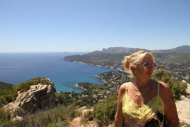 Vous verrez la Corniche Kennedy, le port de pêche du Vallon des Auffes, les falaises du Cap Canaille, les vues sur les Calanques et le port de Cassis.
