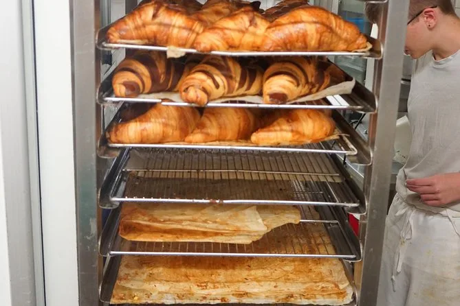 Votre matinée commence par un petit-déjeuner français traditionnel à l’arrivée (croissant frais avec choix de chocolat chaud, café ou boisson fraîche), suivi d’un atelier en petit groupe dans une vraie boulangerie parisienne du Marais où vous découvrirez les coulisses habituellement fermées au public. Vous façonnerez votre propre baguette et croissant avec l’aide des boulangers locaux, préparerez des financiers maison (et les dégusterez tièdes), puis repartirez avec toutes vos créations faites main.