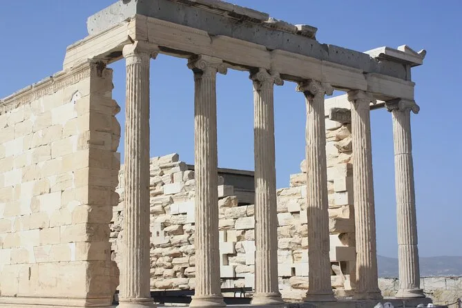 Vous découvrirez le Parthénon, les Propylées, l’Érechthéion (avec les Caryatides), l’Odeon d’Hérode Atticus, les théâtres antiques et d’autres sites clés de l’Acropole.