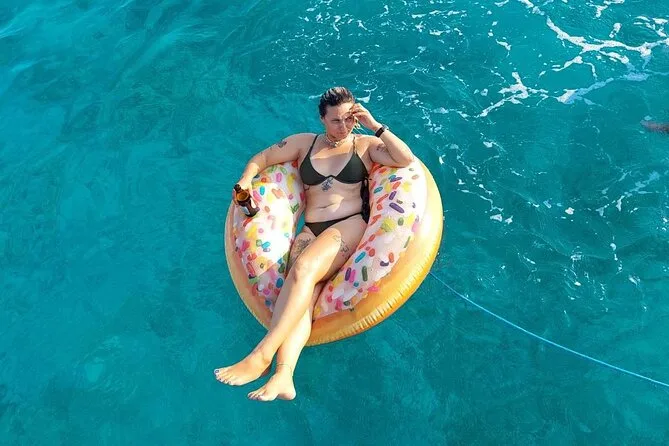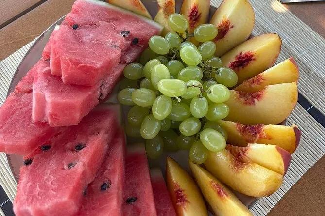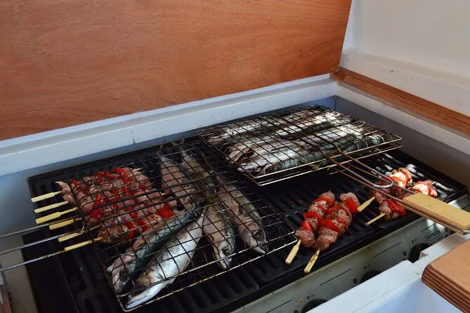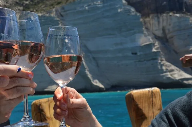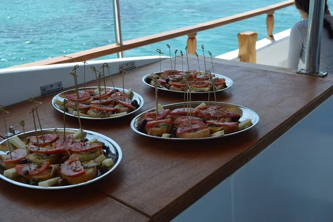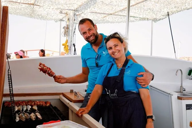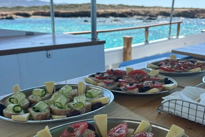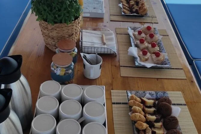 Votre journée comprend un café ou jus de fruit au départ d’Antiparos ou du port de Pounda, plusieurs pauses baignade avec matériel de snorkeling fourni, des en-cas comme du poisson mariné et des tomates fraîches accompagnés d’ouzo ou de vin après la première baignade, un déjeuner complet grec avec poisson grillé ou souvlaki de poulet, salades et bière fraîche à Despotiko, de l’eau en bouteille à volonté plus trois boissons au choix (cocktails inclus), des fruits frais avant le retour en fin d’après-midi — le tout encadré par une équipe locale qui veille à ce que vous ne soyez jamais pressé ni à court de boissons.