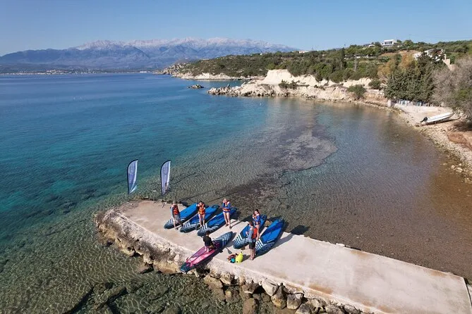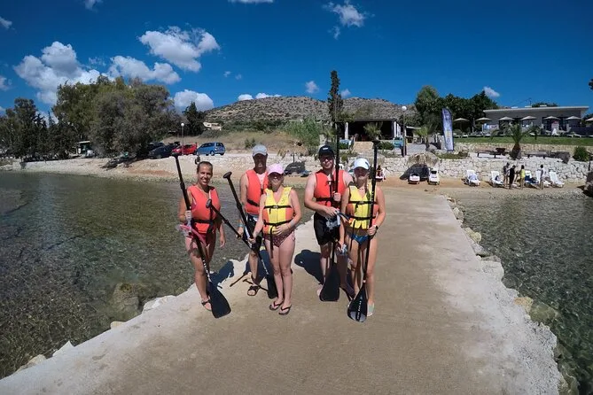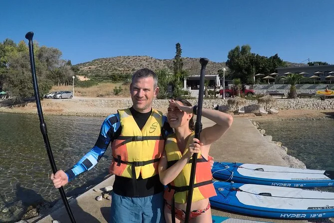 Votre journée comprend la prise en charge et le retour à l’hôtel dans la région de Chania, tout le matériel de stand-up paddle (planche, pagaie, leash et gilet de sécurité), de l’eau en bouteille pour étancher votre soif après la nage ou l’effort (croyez-moi), toutes les taxes incluses pour éviter les mauvaises surprises — et même des vidéos courtes et photos gratuites de votre aventure avant de retourner vous détendre à l’hôtel ou au port de croisière.