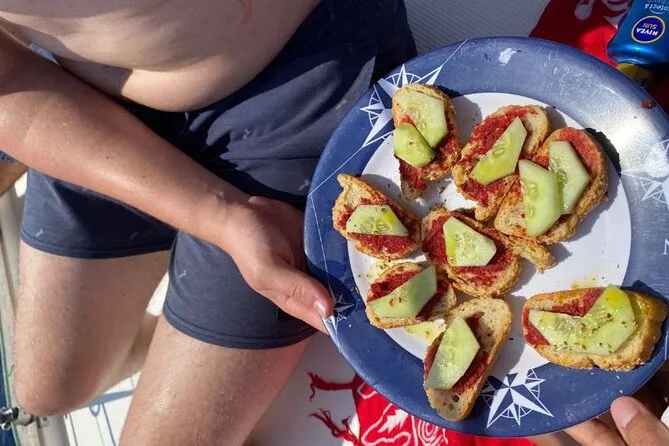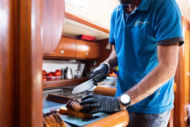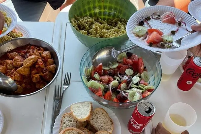 Votre journée comprend une navigation le long de la côte de Milos avec des arrêts baignade et snorkeling à Firopotamos et Kleftiko ; bière, vin, eau en bouteille et boissons non alcoolisées ; une collation de fruits de saison l’après-midi ; un déjeuner frais préparé à bord au mouillage près de Kleftiko ; des snacks locaux après la première baignade ; prêt du matériel de snorkeling ; et du temps pour se détendre sur le pont avant le retour en soirée.