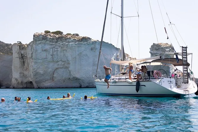 Naviguez le long de la côte sauvage de Milos nagez dans les grottes de Kleftiko savourez un déjeuner à bord écoutez des récits de pirates