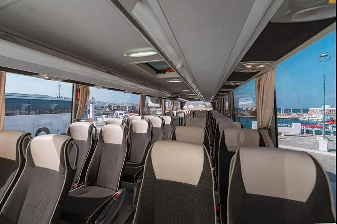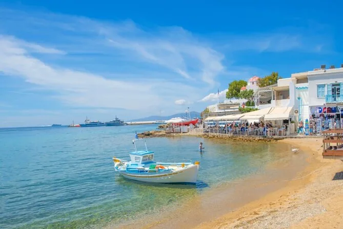 Votre demi-journée comprend un trajet en bus climatisé autour de l’île de Mykonos, guidé par un local anglophone lors des déplacements et des balades. Vous ferez une pause photo à la plage de Kalafatis, une promenade sur la place du village d’Ano Mera entourée de tavernes traditionnelles (nourriture non incluse), et visiterez des sites emblématiques comme Petite Venise et l’église Paraportiani en ville—le tout en partant du terminal de bus du Vieux Port, près de l’arrêt du sea-bus, avant de repartir à votre rythme.