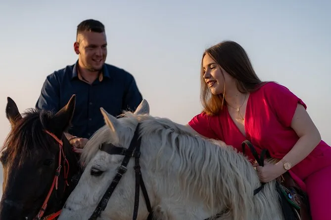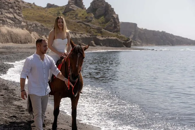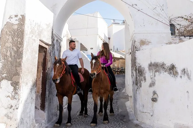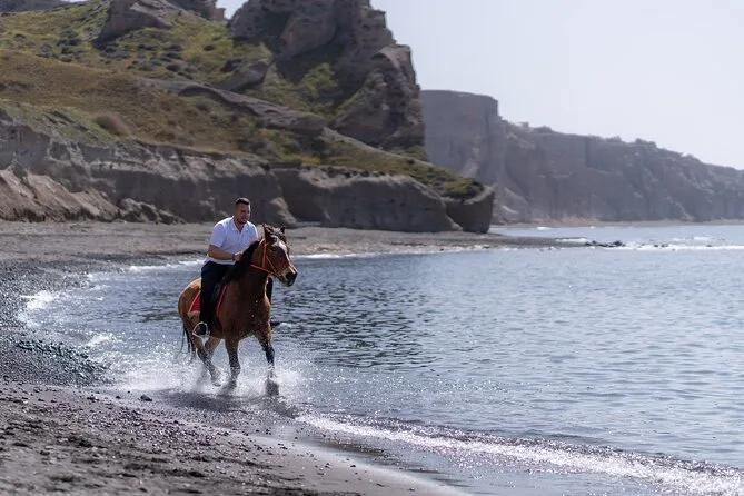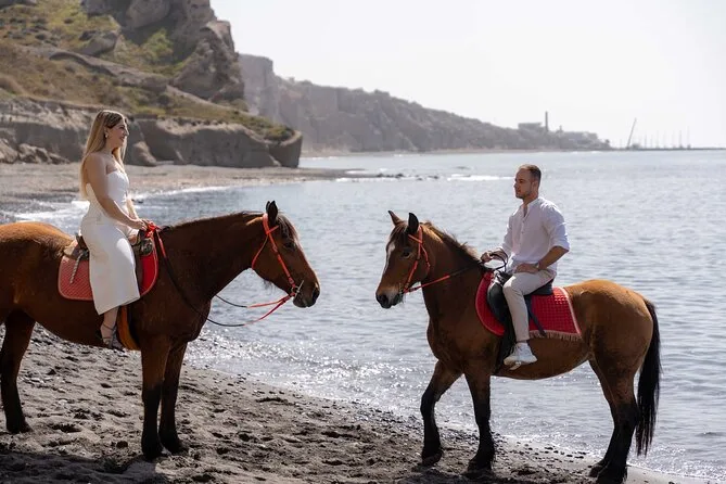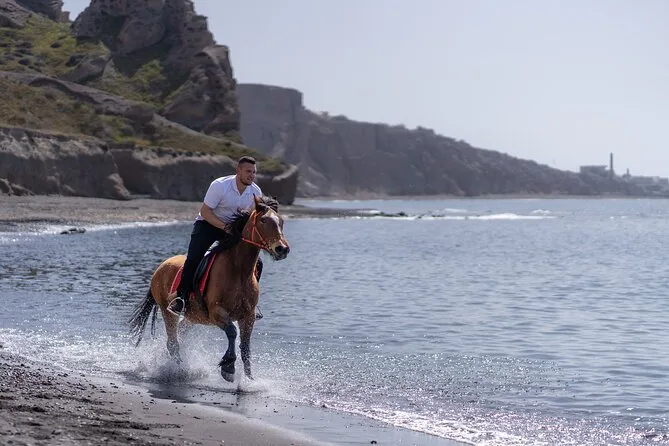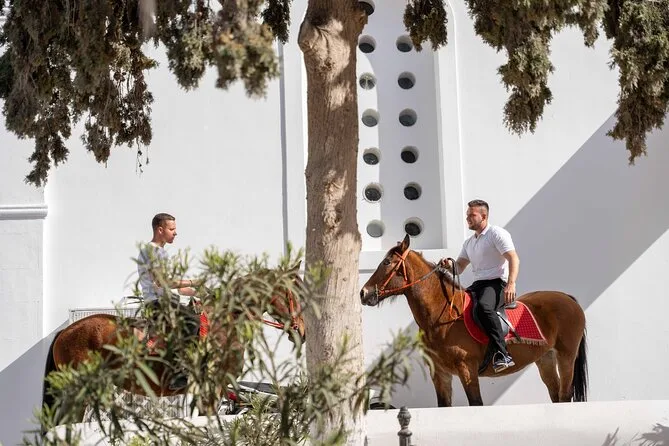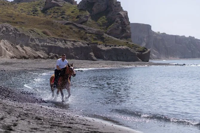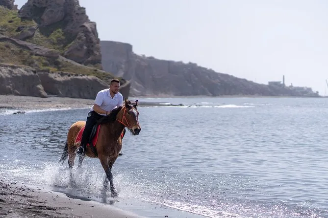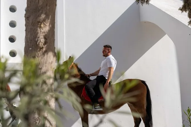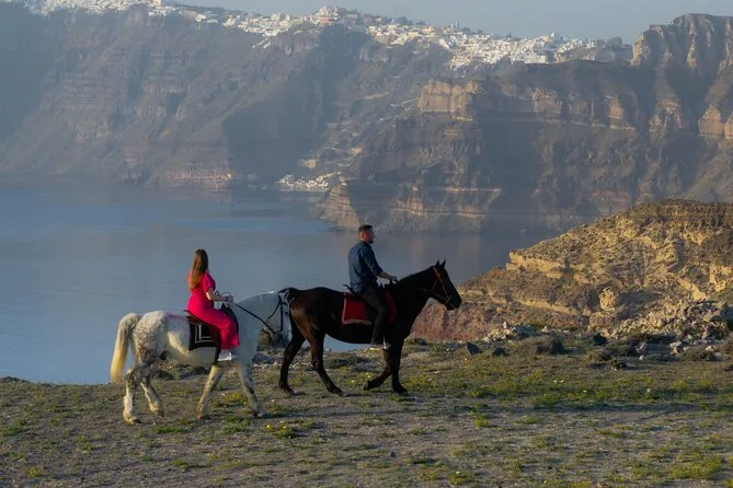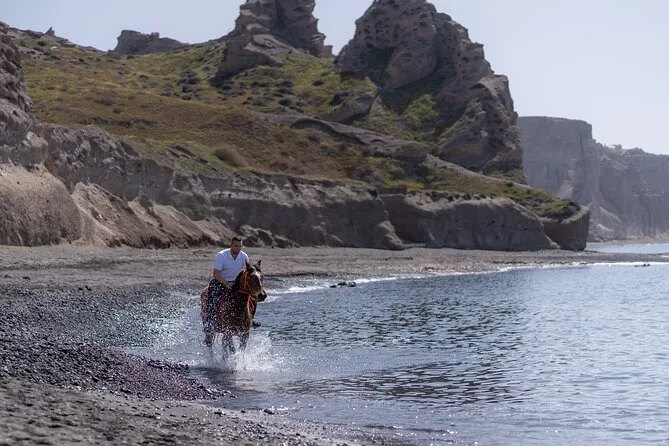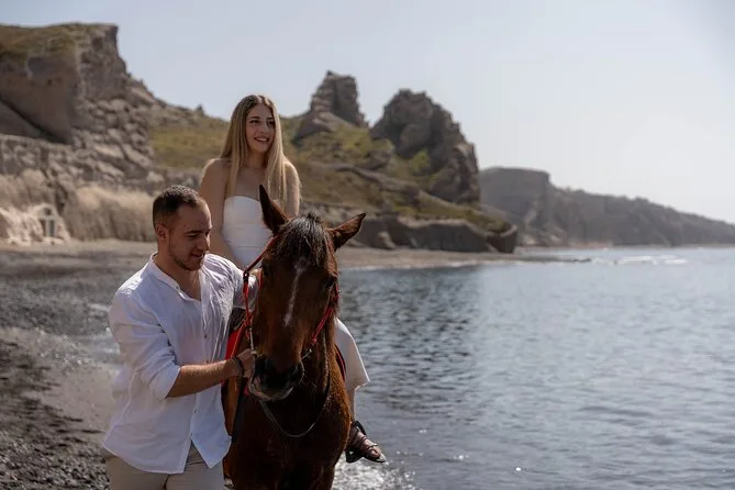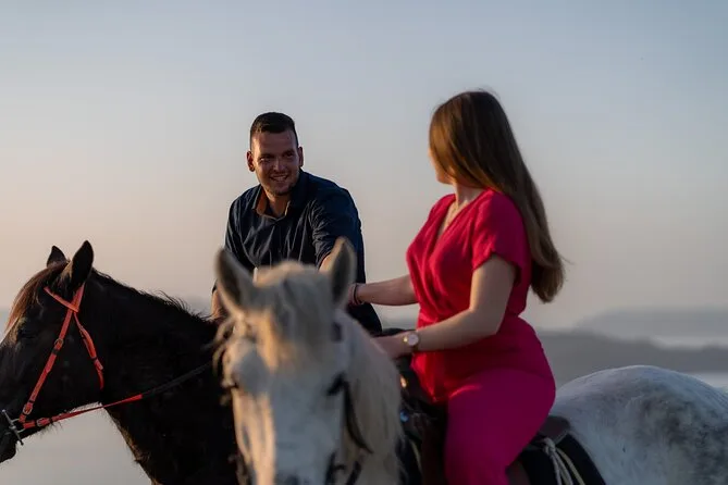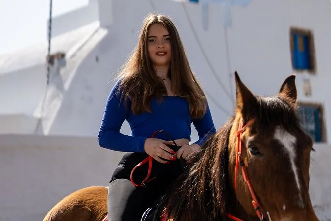Profitez d’une balade à cheval au départ du village de Megalochori, à travers les vignobles et les sentiers de sable noir de Santorin, jusqu’à la caldeira au coucher du soleil. Guidé par un local et bercé par ses histoires, vous découvrirez des vues du volcan que peu de voyageurs voient de près, ainsi que ces instants précieux (rires, air salé) qui restent gravés longtemps après le voyage.