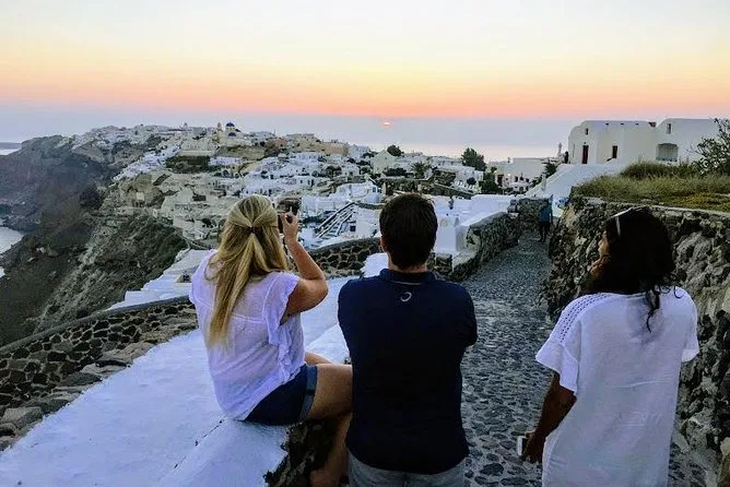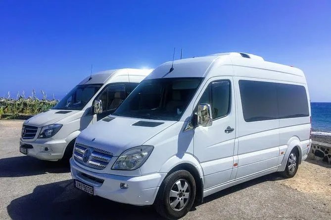 Votre après-midi comprend un transport privé en minivan climatisé avec un guide local sympathique qui vient vous chercher directement à votre hôtel ou point de rendez-vous. De l’eau en bouteille est fournie pendant que vous explorez Pyrgos, Imerovigli, Oia et le Monastère du Prophète Élie avant de revenir après le coucher du soleil.
