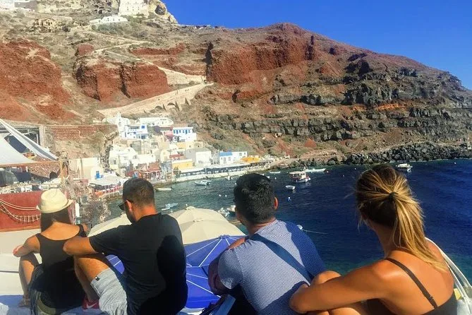 La montée jusqu’au Monastère du Profitis Ilias était plus raide que prévu — j’ai senti mes oreilles se boucher en arrivant en haut. L’air là-haut est différent, presque vif, et on peut voir les deux côtés de Santorin en même temps. Même si vous n’êtes pas fan de photos, c’est difficile de ne pas sortir son téléphone. Giorgos nous a raconté qu’il y a encore des moines qui vivent ici ; apparemment, ils fabriquent leur propre miel (il nous a laissé en goûter — doux et floral). Je n’arrêtais pas de penser au calme absolu, seulement troublé par le vent et les cloches lointaines en contrebas.
