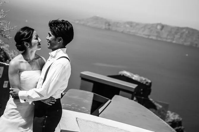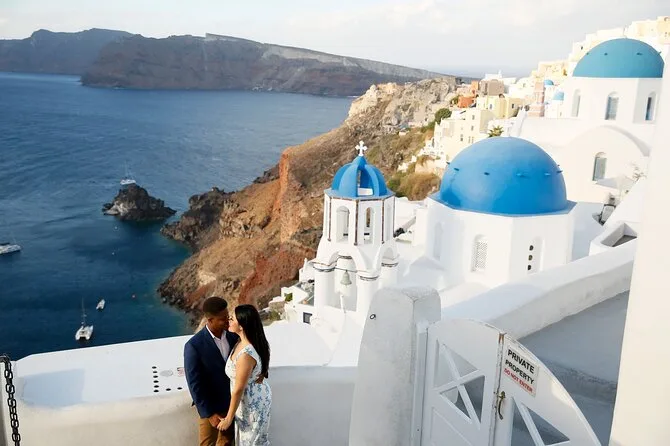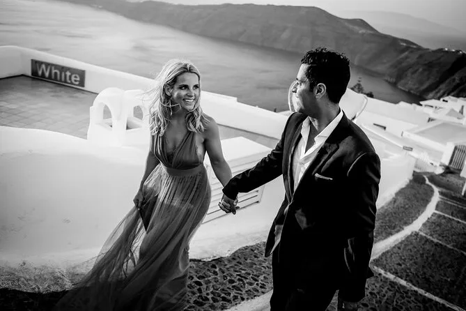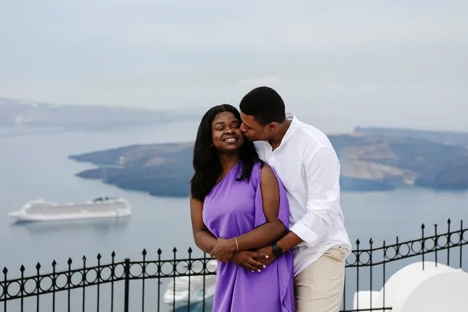 Votre journée comprend un photographe professionnel basé à Santorin qui vous guide sur un itinéraire personnalisé selon vos envies — avec Oia ou Imerovigli comme points de départ — et vous donne accès à vos photos en téléchargement via une galerie en ligne après la séance.