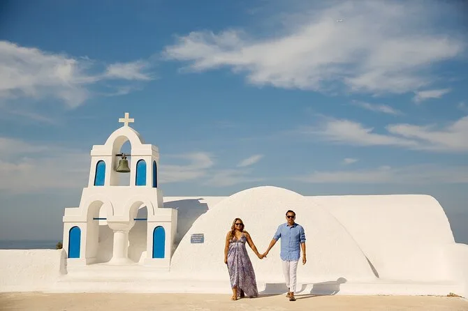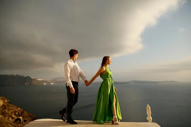 Parcourez les ruelles emblématiques de Santorin avec un photographe local qui connaît tous les meilleurs angles — sans poses forcées. Attendez-vous à des moments spontanés à Oia ou Imerovigli, un itinéraire personnalisé et des photos digitales dont vous serez fier. Ici, on capture votre ressenti, pas un sourire figé.