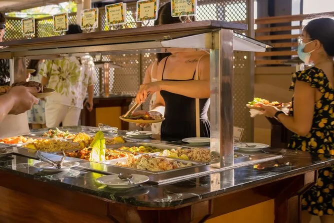 Votre soirée comprend la navette aller-retour (si choisie), l’accès au seul dîner-spectacle en bord de mer de Guam avec places réservées sur le sable ou la terrasse, un buffet avec options végétariennes, et l’accompagnement chaleureux de guides locaux avant de vous ramener en toute sécurité à votre hôtel ou voiture.