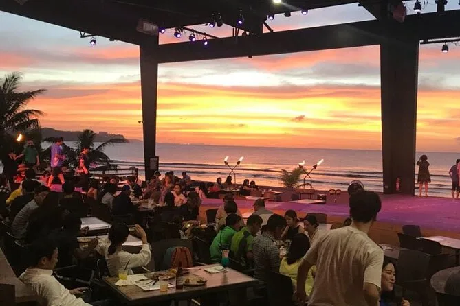 La première chose qui m’a frappé, c’est la lumière de la scène qui dansait sur l’océan — on entendait vraiment le bruit des vagues derrière la musique, un peu irréel. On venait tout juste de descendre du bus (la navette était super simple, au passage), le sable collait déjà à mes tongs. Il y avait des familles en flip-flops, des couples main dans la main, et même quelques enfants qui couraient partout pendant qu’on attendait pour s’enregistrer près du Beach Bar. Notre guide, Malia, nous a fait signe avec un grand sourire et a distribué des bracelets — elle a plaisanté en disant qu’il ne fallait surtout pas les perdre, sinon on finirait sur scène à danser nous-mêmes. J’ai failli la croire.