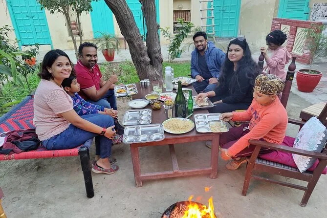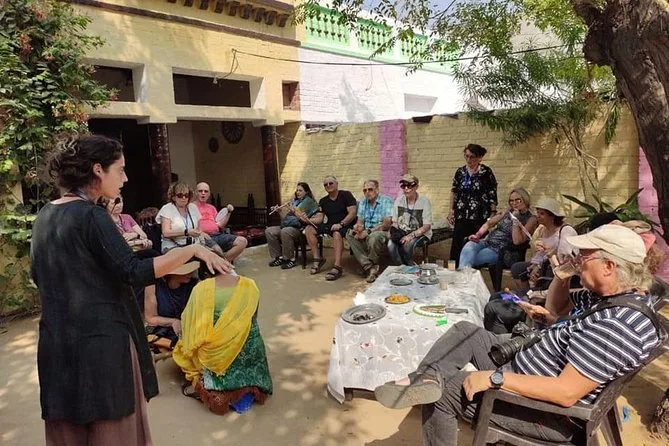 Plongez dans le Punjab rural près d’Amritsar : dégustez un lassi épais à l’arrivée, baladez-vous en tracteur dans les ruelles, goûtez des pakoras frais avec un thé au jaggery sous un neem, puis savourez un déjeuner maison avec des locaux qui vous accueillent comme un membre de la famille. Rires, nouvelles saveurs et souvenirs qui restent longtemps.