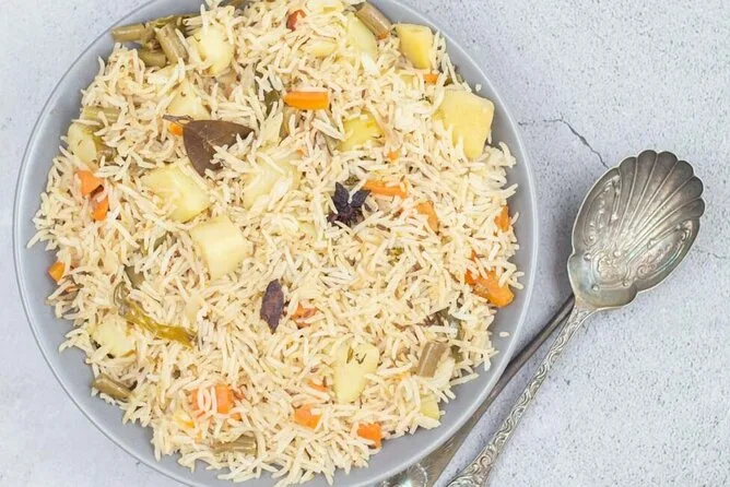 On s’est mis au travail sans attendre. La cuisine était animée, mais jamais stressée — quelqu’un pétrissait la pâte pour les chapattis, un autre coupait pommes de terre et chou-fleur pour le sabzi. La famille expliquait chaque épice au fur et à mesure : curcuma pour la couleur, cumin pour la chaleur, garam masala à la fin pour relever le tout. J’ai appris à étaler les chapattis (pas parfaitement ronds, mais ça n’avait pas d’importance) et j’ai regardé le riz pour le pulao cuire à la vapeur avec des clous de girofle et des feuilles de laurier. On a ri quand j’ai renversé un peu de farine par terre — apparemment, ça porte chance aux cuisiniers débutants.
