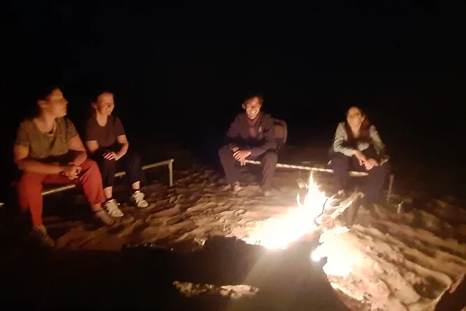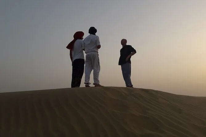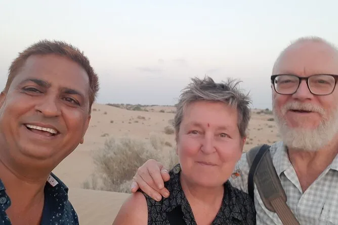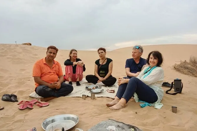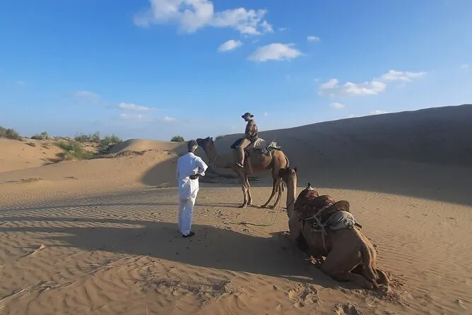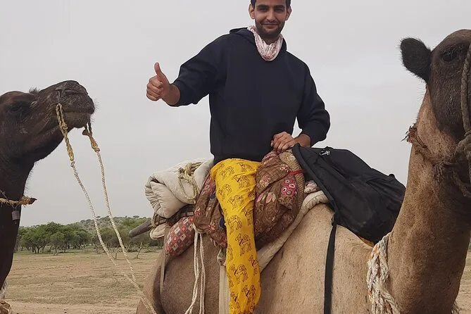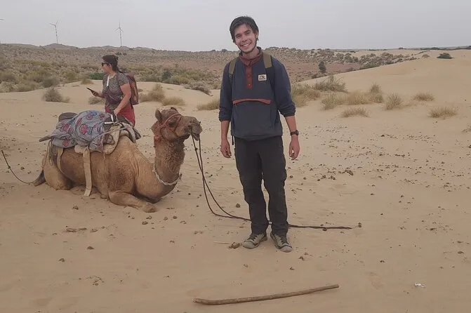 Votre aventure d’une nuit comprend un transfert privé en jeep depuis Jaisalmer, toutes les balades à dos de chameau avec un guide local passionné qui prépare des repas frais au feu de bois (avec cours de cuisine improvisé), ainsi que couvertures et matelas pour dormir sous les étoiles. Vous prendrez un petit-déjeuner avec chai au lever du soleil avant de revenir en ville — des douches et un service de consigne sécurisé sont aussi disponibles avant ou après votre séjour.