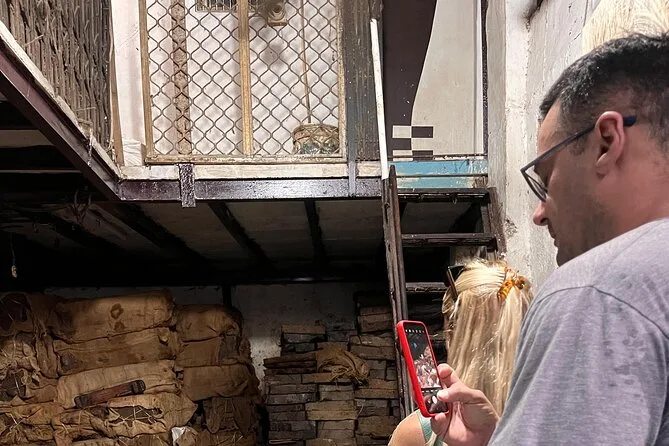 On s’est faufilés dans un atelier de maroquinerie où des hommes cousaient à la main des portefeuilles — leurs doigts allaient tellement vite que ça semblait magique. Je me souviens avoir touché un portefeuille fini ; le cuir était chaud, chauffé par le soleil. Sameer nous a expliqué combien ces ateliers génèrent d’affaires — des millions de roupies apparemment — et je suis resté là, à penser à tout ce qu’on ne voit pas depuis l’extérieur. Tout au long de la visite, j’ai remarqué plein de petits détails : une radio qui passait des chansons Bollywood au-dessus de nos têtes, des uniformes d’enfants qui séchaient sur des fils bricolés, ce mélange d’espoir et de travail acharné dans les regards.