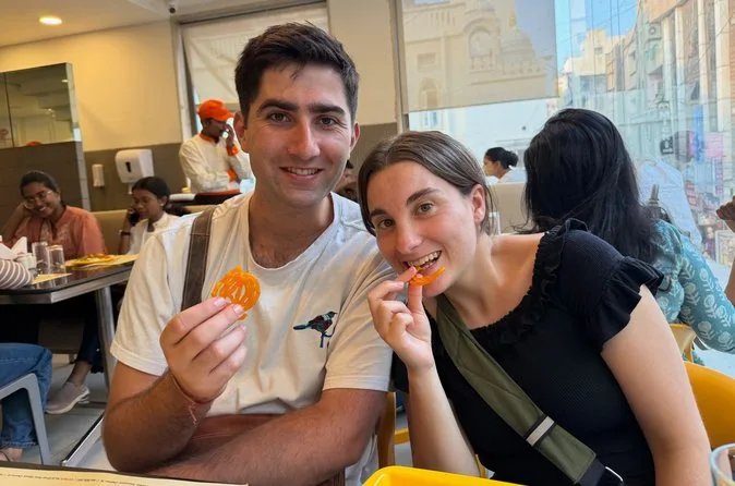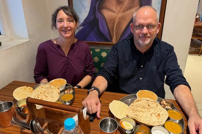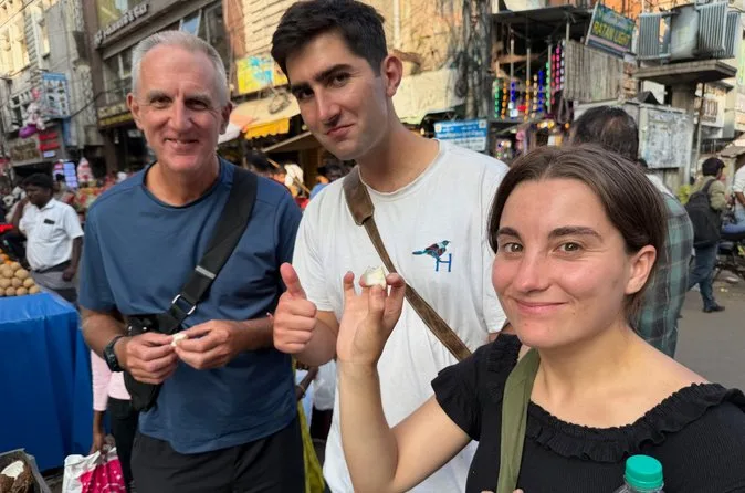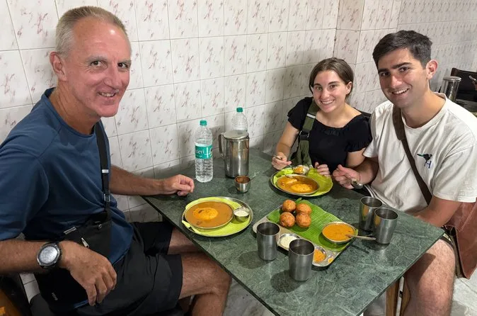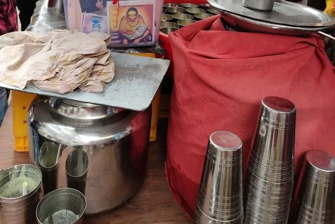 Votre billet inclut toutes les dégustations de street food sur le parcours — chaats, snacks comme le sandwich murukku et le thattu idli, douceurs comme le pal kova, boissons fraîches, eau en bouteille, ainsi que les histoires et conseils de votre guide local.