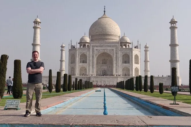 Notre guide nous attendait juste devant le Taj Mahal — billets déjà pris, ce qui nous a évité au moins une demi-heure d’attente. La première vue de ce marbre blanc à travers la brume matinale est… je ne m’attendais pas à ce que ce soit aussi paisible à l’intérieur. Il y avait du monde partout, mais l’atmosphère restait calme. Notre guide a raconté des anecdotes sur Shah Jahan et Mumtaz qui rendaient le lieu vivant, pas juste un monument de plus. Il s’est même proposé de nous prendre en photo (il connaissait tous les meilleurs angles), même si mes poses étaient un peu ratées. Pourtant, je repense souvent à ce moment au bord du bassin réfléchissant — l’air sentait légèrement la pierre mouillée et les roses.
