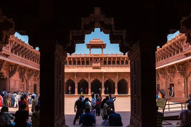 Ensuite, direction le Fort d’Agra — ses murs en grès rouge semblaient briller sous la lumière du matin. À seulement 15 minutes en voiture du Taj Mahal, on a l’impression d’entrer dans un autre monde ; en regardant bien, on aperçoit des bouts de vie quotidienne au-delà des remparts. Notre guide nous a montré des impacts de boulets de canon (je ne les aurais jamais remarqués) et raconté des anecdotes sur le règne d’Akbar, loin des récits scolaires. Le déjeuner au Courtyard by Marriott était plus raffiné que prévu — naan moelleux, dal crémeux, et un plat de paneer dont je rêve encore parfois tard le soir.