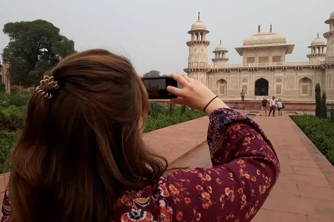 Après le repas, visite du Baby Taj, comme l’appellent les locaux — le tombeau d’Itimad-ud-Daulah — plus petit mais d’une finesse incroyable de près. Les incrustations de marbre sont si délicates qu’on a envie de les toucher (j’ai failli le faire avant de me retenir). À ce moment-là, j’étais un peu fatigué ; notre guide a dû s’en apercevoir car il a détendu l’atmosphère avec des blagues sur la mode moghole (« Imaginez porter ces robes sous cette chaleur ! »). Sur le chemin du retour vers Delhi, je me suis assoupi un moment, me réveillant juste en arrivant dans les bouchons — drôle comme la réalité reprend vite après une journée pareille.