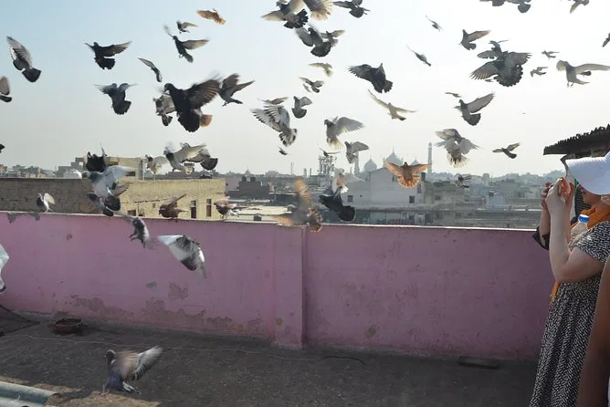 Votre journée comprend une visite guidée à pied des bazars et sites historiques du Vieux Delhi, des trajets en rickshaw entre quartiers, des dégustations de street food sûre, ainsi qu’une bouteille d’eau ou une limonade fraîche en été. Vous explorerez le marché aux épices Khari Baoli avant de terminer à Masterji Kee Haveli pour un déjeuner ou dîner maison offert par vos hôtes, puis retour au point de départ.