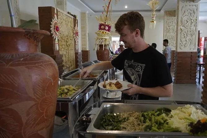 Le déjeuner a suivi dans un petit resto buffet près de Bedugul. Rien de sophistiqué mais très bon — plein de légumes, du poulet satay, et un café balinais bien corsé qui tombait à pic après toute cette marche.