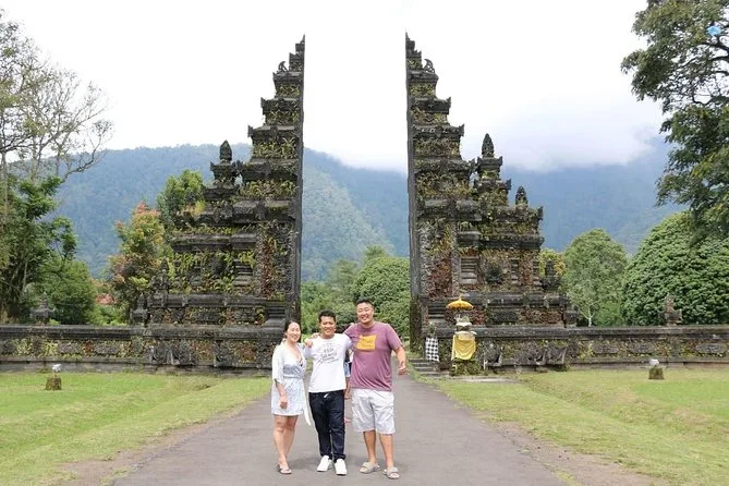 La journée a commencé tôt, avec notre chauffeur qui nous attendait dans le hall de l’hôtel — ce sourire facile qu’on croise partout à Bali. Après quelques heures à serpenter sur les routes de montagne (fenêtres ouvertes, l’air frais qui s’infiltre doucement), nous sommes arrivés à la célèbre porte Handara. C’est bien plus calme que prévu si vous y êtes avant 10h. La pierre couverte de mousse et les collines embrumées derrière donnent un air presque irréel aux photos, mais sur place, on sent aussi cette légère odeur d’herbe mouillée et d’encens venant d’une offrande toute proche. Notre guide nous a même montré le meilleur angle pour éviter la foule du matin — on aurait dit que l’endroit était à nous le temps d’un instant.