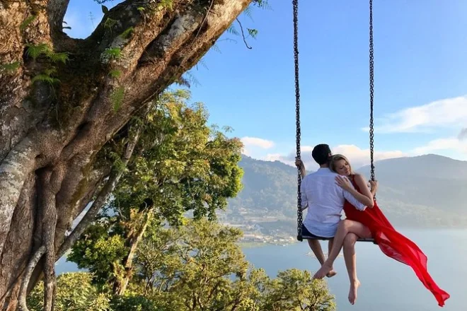 Après, direction Wanagiri Hidden Hill. Ce lieu atypique propose des balançoires et des nids d’oiseaux suspendus, face aux lacs Buyan et Tamblingan. Un vendeur local proposait de l’eau de coco fraîche ; nous en avons profité en attendant que les nuages se dissipent au-dessus des collines. La vue est à couper le souffle—on peut apercevoir les deux lacs en grimpant sur l’une des plateformes (attention à ne pas glisser, surtout après la pluie).