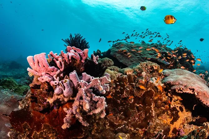 Glisser au-dessus des jardins de corail, c’était comme voler au ras d’une ville colorée. De petits poissons jaunes filaient entre des éventails violets ; parfois, un éclat argenté apparaissait à la périphérie de la vue. Le récif est peu profond — parfois à hauteur de taille — ce qui rend la baignade facile même pour les moins expérimentés, parfait pour se détendre et observer ce spectacle sous-marin. De temps en temps, un léger courant me poussait doucement, comme si l’océan lui-même voulait nous montrer ses plus beaux coins.
