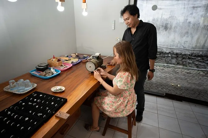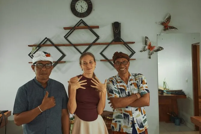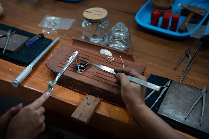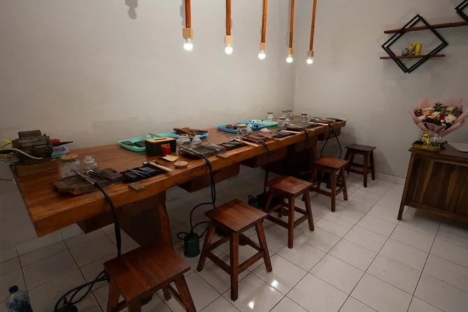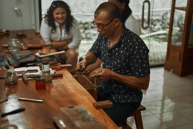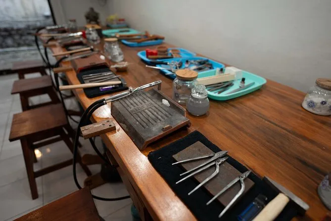 Votre réservation inclut tous les matériaux et outils nécessaires pour créer votre bijou en argent (jusqu’à 7 grammes), l’accompagnement par des bijoutiers locaux expérimentés à chaque étape, de l’eau minérale et une collation traditionnelle pendant l’atelier, ainsi que le Wi-Fi gratuit sur place pour partager vos photos avant de replonger dans l’effervescence d’Ubud avec votre création unique.
