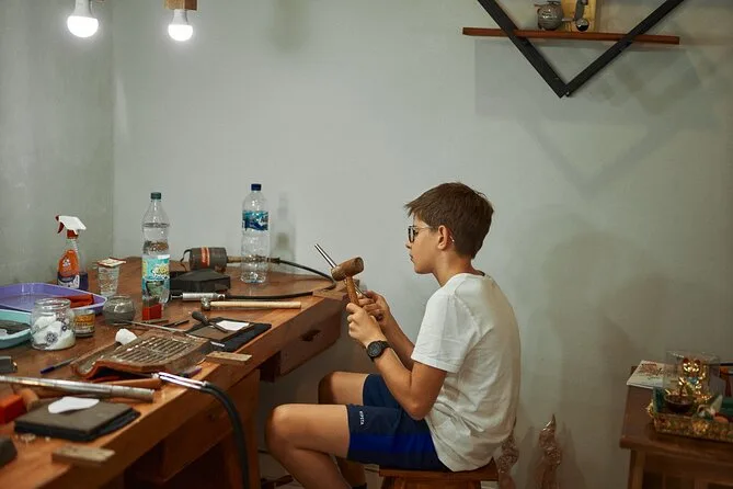 Concevez et réalisez votre bijou en argent à Ubud, accompagné par des artisans locaux — fonte, façonnage, soudure, puis polissage jusqu’à l’éclat. Attendez-vous à mettre la main à la pâte (et peut-être à avoir les doigts un peu collants), à rire de dessins imparfaits, et à savourer des petites gourmandises balinaises. Vous repartez non seulement avec un bijou, mais aussi une belle histoire à raconter.