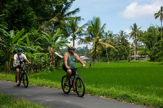 Votre journée comprend la prise en charge à l’hôtel en véhicule climatisé depuis Ubud ou ses environs, tout le matériel de vélo (avec sièges bébé si besoin), de l’eau en bouteille tout au long du parcours, un guide local anglophone qui connaît tous les raccourcis et histoires, une assurance accident personnelle pour votre tranquillité d’esprit — et enfin un déjeuner indonésien en plein air avant de rentrer, les chaussures boueuses mais le sourire aux lèvres.