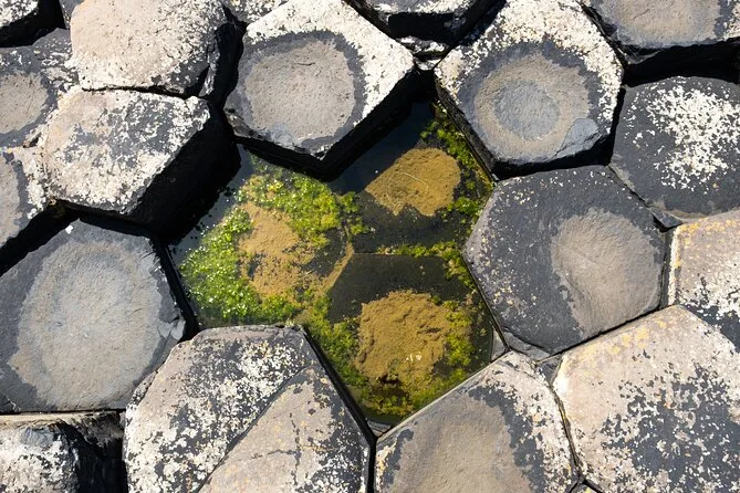 La Chaussée des Géants, c’est un de ces endroits qu’on voit en carte postale, mais être là-bas, c’est autre chose. Les colonnes de basalte étaient fraîches au toucher, toutes ces formes hexagonales empilées comme des Lego naturels. Il y a eu un moment où tout le monde s’est tu en même temps — juste à écouter la mer frapper les rochers et les mouettes crier au-dessus. Par temps clair, on peut apparemment voir l’Écosse de l’autre côté ; j’ai plissé les yeux, mais mes yeux ne sont peut-être pas assez bons. Le déjeuner, c’était ce qu’on pouvait trouver sur place (j’ai pris un rouleau à la saucisse, bien meilleur que prévu). C’est drôle comme les jambes fatiguent après avoir grimpé sur les rochers pendant une heure ou deux.