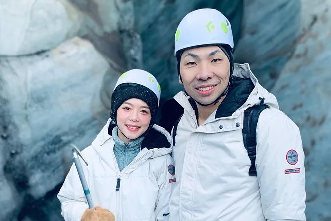 Le tour comprend une randonnée guidée sur glacier avec équipement de sécurité, une visite de grotte de glace avec matériel, une sortie observation des baleines à Hauganes, et des arrêts aux principales attractions.