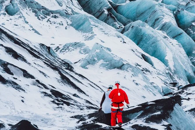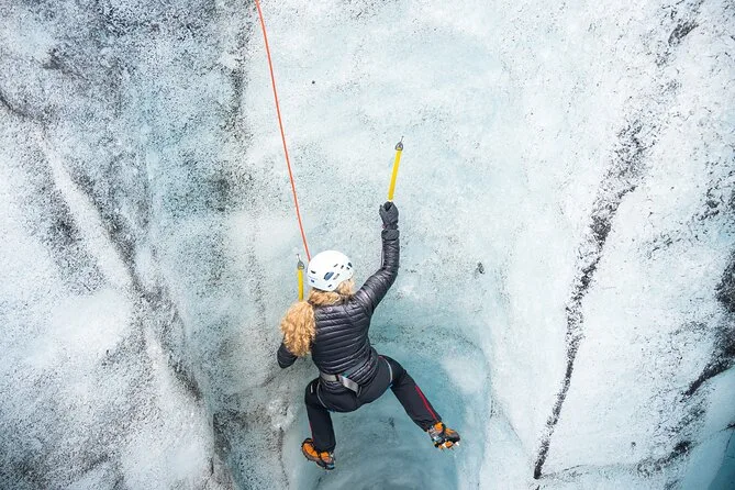 Votre journée comprend tout l’équipement spécialisé de sécurité glacier : harnais, casque, crampons et piolets ; l’accompagnement d’un expert local certifié tout au long de la randonnée et de l’escalade sur Sólheimajökull ; ainsi que de longs moments pour explorer crevasses et formations de glace en petit groupe avant de revenir épuisé mais ravi.