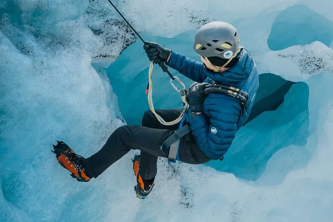Marchez sur la glace bleue mouvante et grimpez les parois gelées avec des guides experts