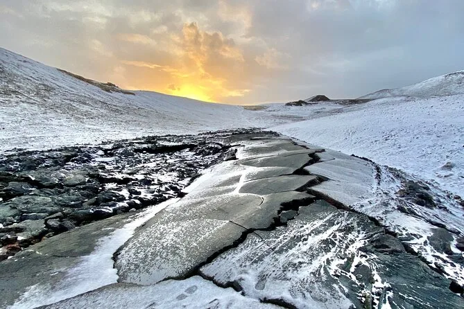 Randonnée volcanique près de Reykjavik et baignade au Blue Lagoon avec guide