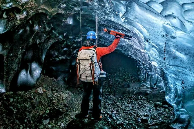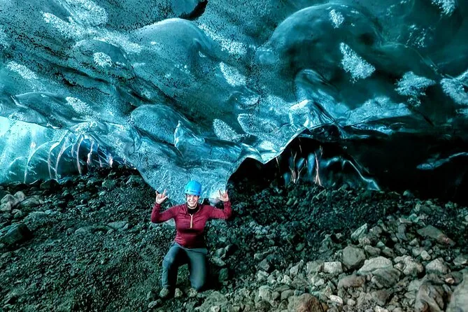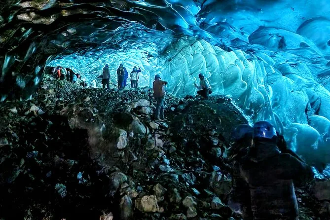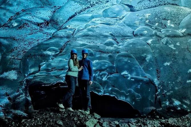 Votre journée comprend la prise en charge à la lagune glaciaire de Jökulsárlón, tous les frais d’entrée et taxes, ainsi qu’un guide local expert qui fournit casques, crampons, lampes frontales — et assure la sécurité de tous pendant l’exploration des grottes de glace bleue en constante évolution du Vatnajökull.