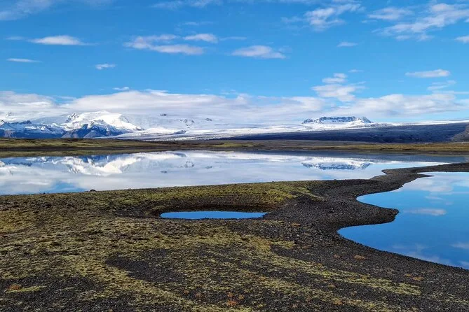 Vous marcherez sur du sable noir et de la neige depuis Jökulsárlón pour pénétrer dans les grottes de glace bleue mouvantes du Vatnajökull, guidé par un expert local qui connaît chaque recoin glacé. Ressentez le calme en entrant, équipez-vous de crampons et casque, admirez la lumière danser sur la glace millénaire — et repartez avec des souvenirs qu’aucune photo ne peut vraiment capturer.