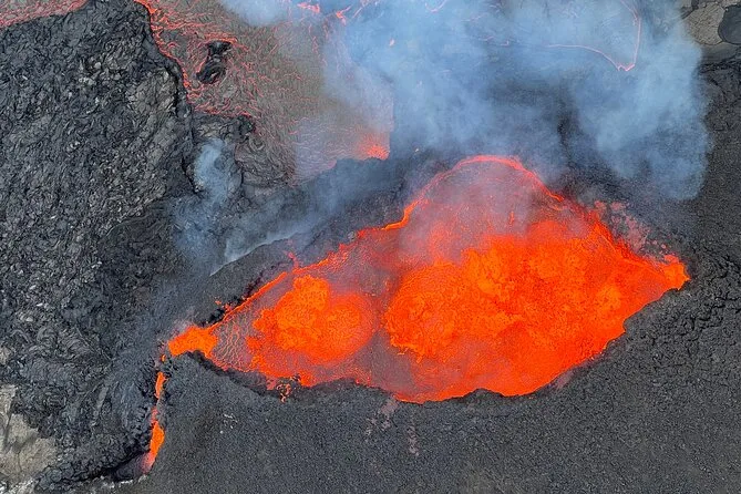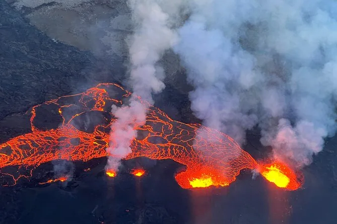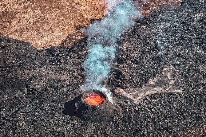 Votre journée comprend un siège dans un petit groupe pour un vol en hélicoptère au-dessus de la nouvelle zone d’éruption volcanique de la péninsule de Reykjanes — carburant inclus — ainsi que des récits de guides locaux passionnés, avant un retour à Reykjavík avec des souvenirs plein la tête.