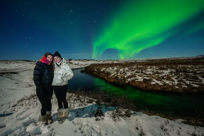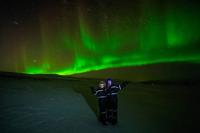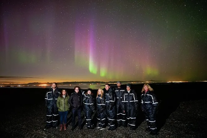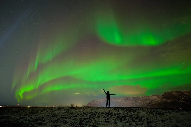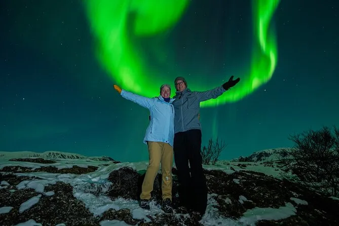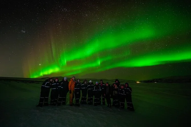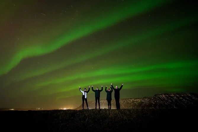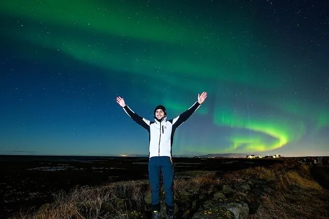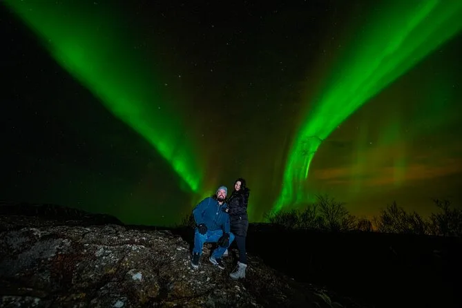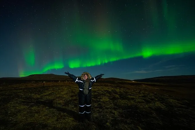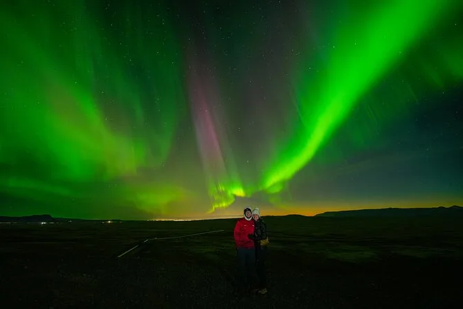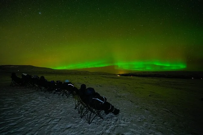 Votre soirée comprend la prise en charge et le retour depuis certains lieux à Reykjavik, des combinaisons d’hiver chaudes pour rester confortable dehors, des chaises pliantes pour observer le ciel, des photos illimitées en haute résolution prises par votre guide local (et de l’aide pour votre propre appareil), ainsi que des snacks islandais traditionnels comme le chocolat chaud, des pâtisseries, du poisson séché et même un peu de vodka ou schnaps — sans oublier les sorties gratuites si vous ne voyez pas les aurores du premier coup.