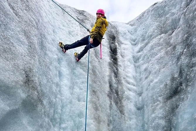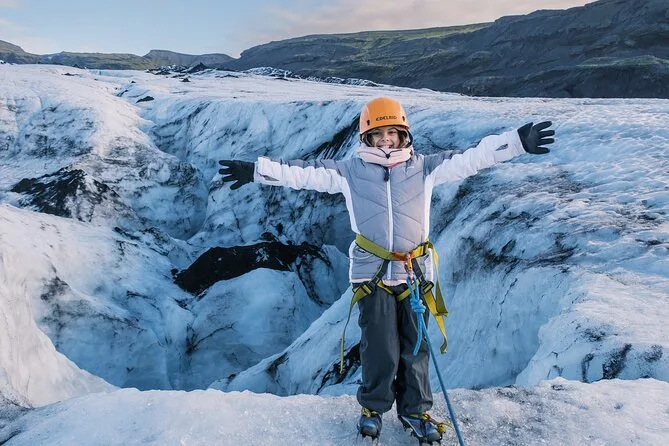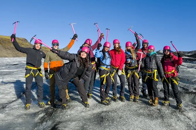Votre journée comprend la prise en charge et le retour à Reykjavik, le transport en minibus avec WiFi, un guide local anglophone, ainsi que tout le matériel de sécurité nécessaire pour la randonnée sur le glacier Sólheimajökull (crampons, casque et piolet—pensez à vos chaussures de randonnée). Les frais d’entrée sont inclus ; les repas ne le sont pas, alors prévoyez des encas ou achetez sur place avant de rentrer ensemble au coucher du soleil.