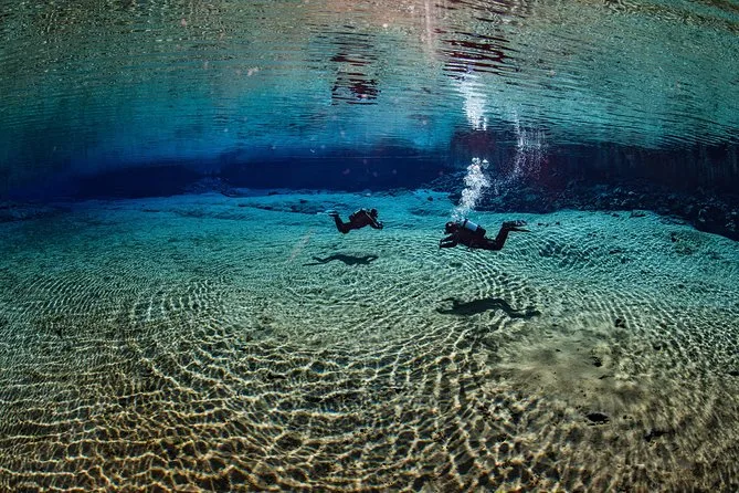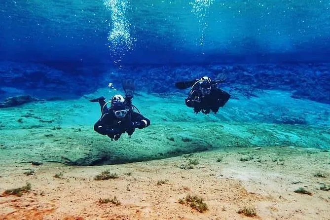 Votre journée comprend la rencontre avec votre guide certifié PADI à Silfra, l’accès à une camionnette chauffée pour enfiler votre combinaison étanche et sous-combinaison, tout l’équipement de plongée fourni sur place, les frais d’entrée à Silfra, ainsi qu’un chocolat chaud et des biscuits à la fin — le parfait réconfort après avoir nagé dans cette eau islandaise sauvage.