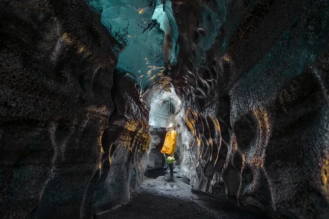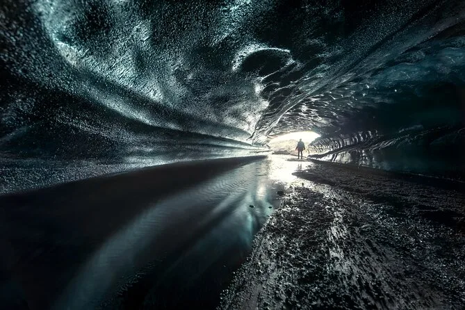 Votre journée commence à Vik avec un guide glacier certifié, un trajet en Super Jeep à travers les hautes terres couvertes de mousse, l’accès à la grotte naturelle Katla sur le glacier Kötlujökull, et tout l’équipement de sécurité nécessaire comme crampons et casque — prêt à explorer ces tunnels glacés en toute sérénité.