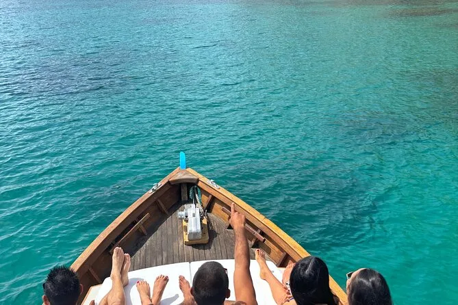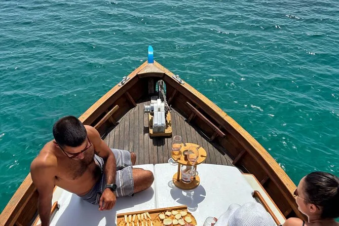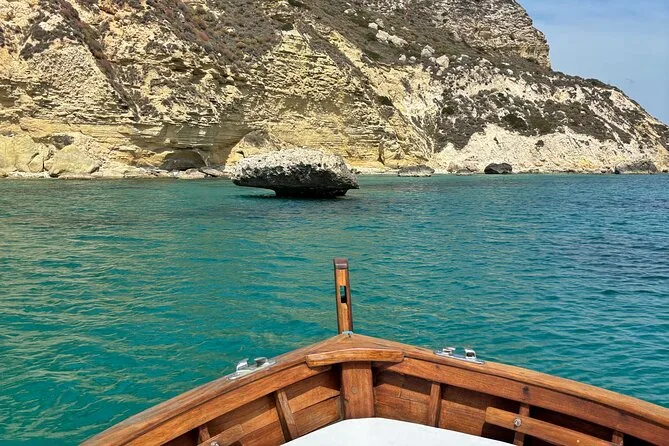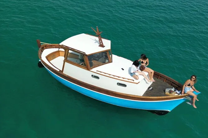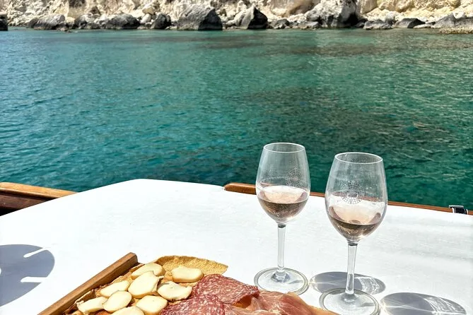 Votre journée comprend une balade à bord d’un gozzo élégant avec espaces ombragés et ensoleillés, l’usage du matériel de snorkeling lors de plusieurs arrêts baignade le long de la côte de Cagliari, de l’eau fraîche à volonté, ainsi qu’un apéritif sarde classique servi à bord—charcuterie, fromage, olives et vin local—le tout guidé par un expert local avant le retour au port.