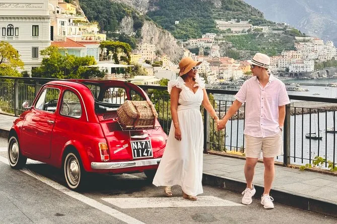 Montez à bord d’une Fiat 500 vintage avec un photographe local et parcourez les villages de la Côte Amalfitaine comme Positano et Praiano. Attendez-vous à des photos spontanées (et quelques poses un peu gênantes), à l’air salé, aux histoires du guide, et à recevoir vos souvenirs numériques directement sur votre téléphone. Si le timing est bon, vous verrez aussi le fjord de Furore — mais surtout, vous aurez l’impression d’entrer dans un rêve ensoleillé d’un autre temps.